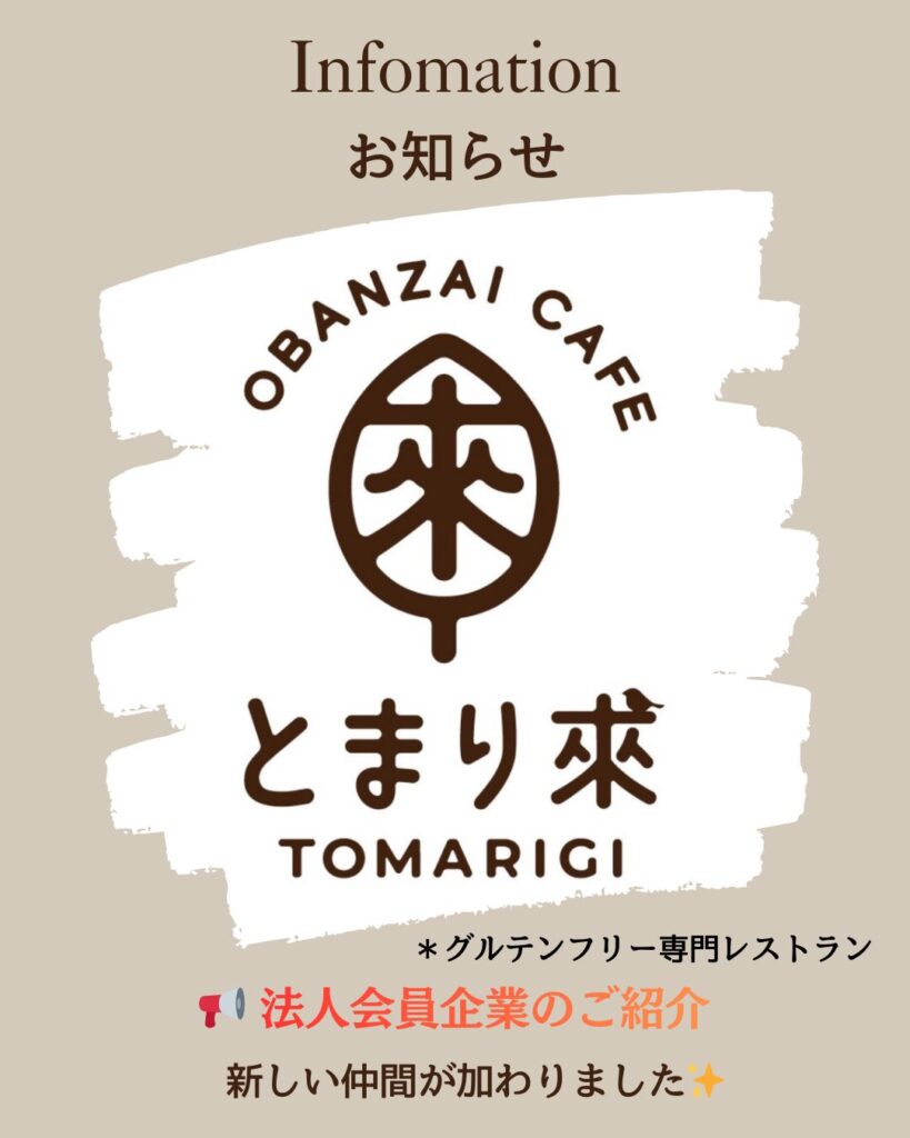 このたび、グルテンフリーのおばんざいレストラン「とまり來」様が、新たに法人会員として加わりました!